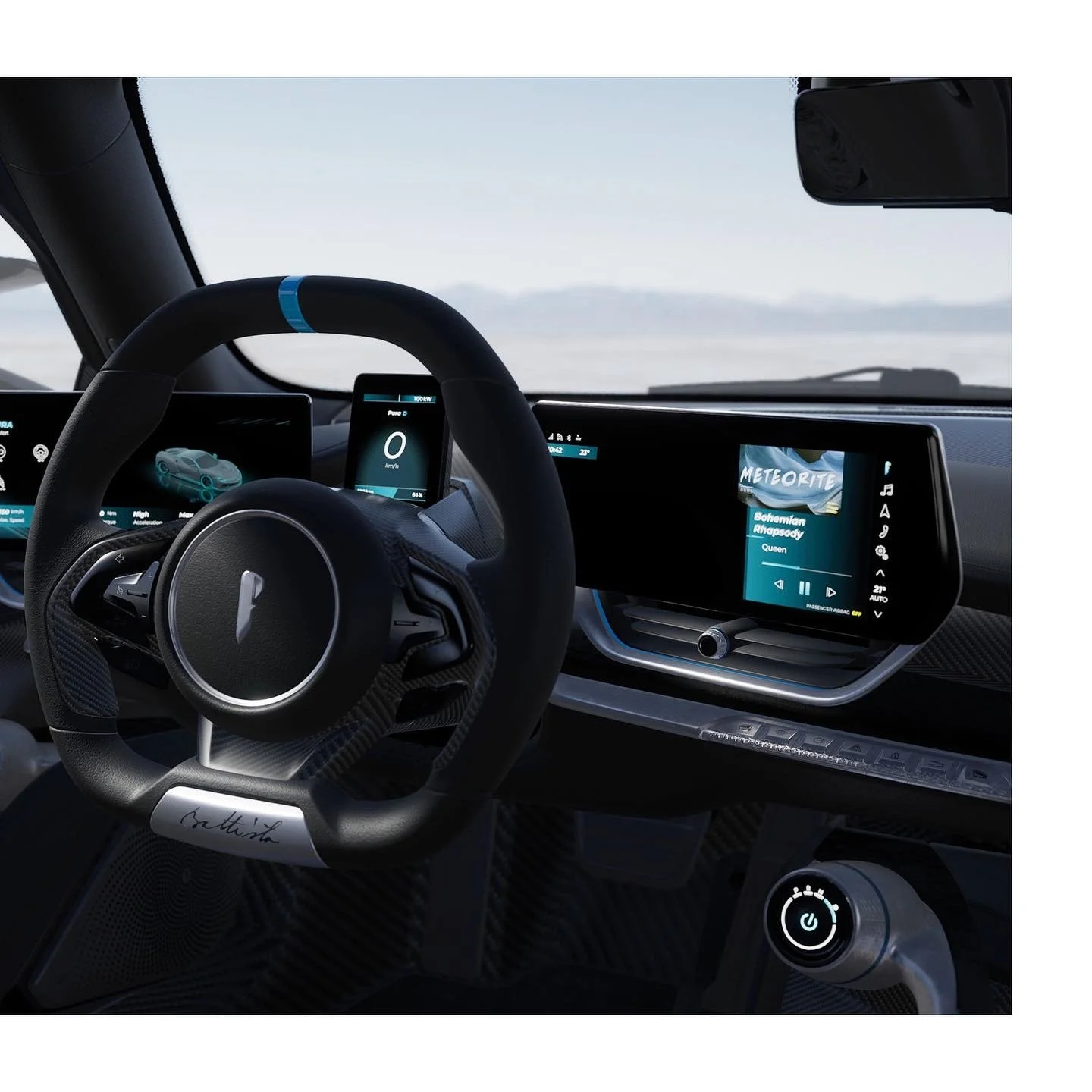 The cabin of Battista has an elegant ambience with a purity of purpose that seamlessly matches the exterior design. Battista is an ultra high performance car, so the interior is totally focused on the driver interface.